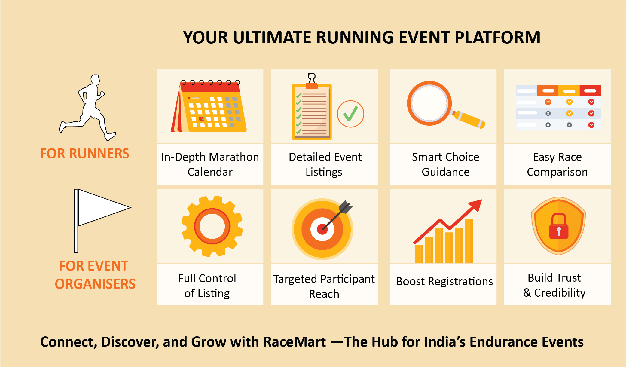 Solution : ‘Runner A’ started using RaceMart, a Comprehensive Directory for Indian endurance events tailored specifically for runners. The directory served him as a one-stop resource consolidating all relevant event information in a user-friendly format.Not only this, ‘Runner A’ was able to plan and train for his run appropriately as he had the venue and other timing-related race-day details beforehand.